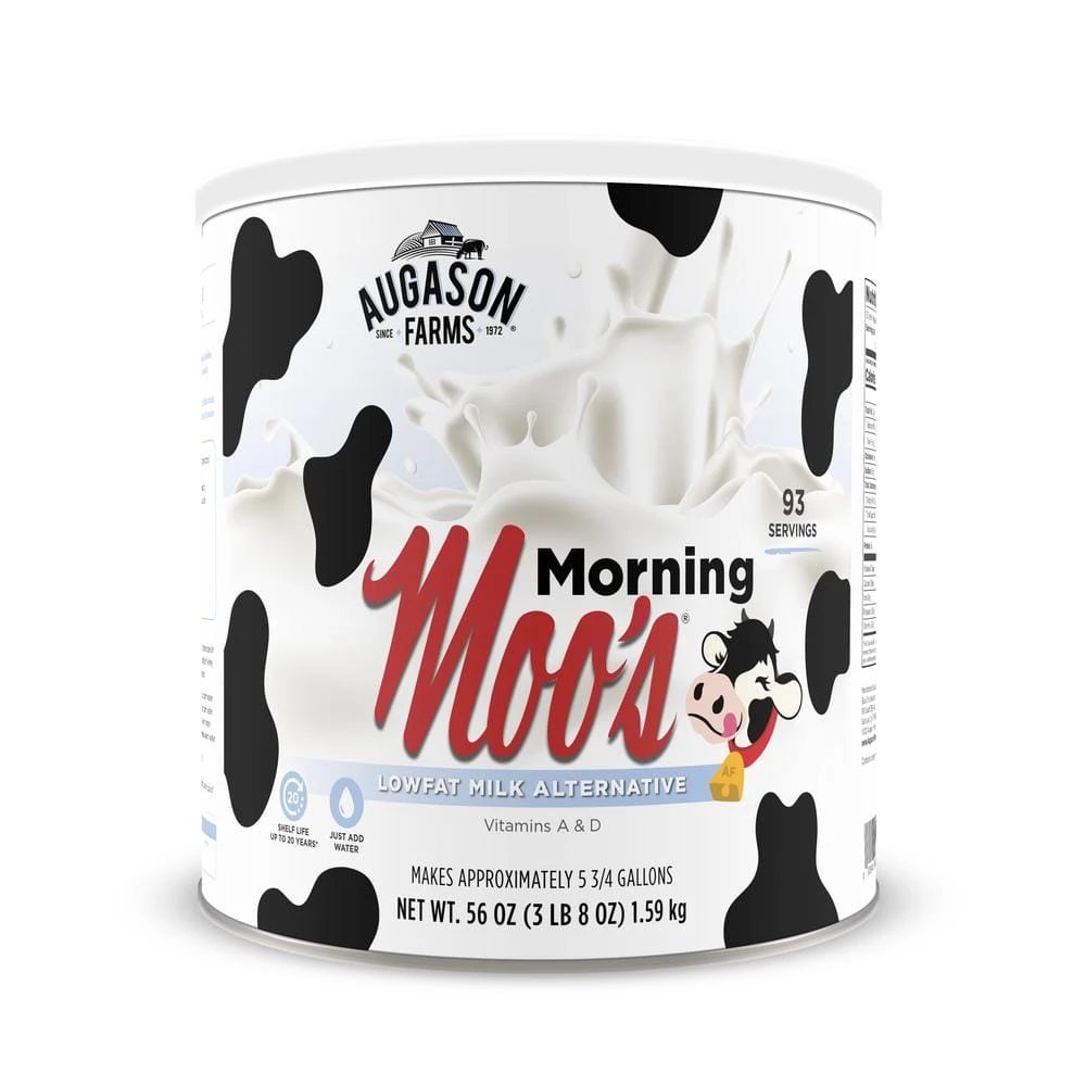 Morning Moo’s Low Fat Milk Alternative is a whey-based beverage that is ideal for everyday use or as a part of your emergency food supply. It looks and tastes like fresh milk, is rich in calcium, and fortified with vitamins. It’s delicious served hot with brown sugar and pumpkin spice, and this dry powdered milk alternative can also be used as a substitute for light cream by adding half the recommended amount of water. Shelf life up to 20-years based on storage conditions. Family owned and operated since 1972, AUGASON FARMS products are guaranteed for their great taste and superior quality. Include AUGASON FARMS in your pantry for everyday use or in your emergency food supply for the unexpected.