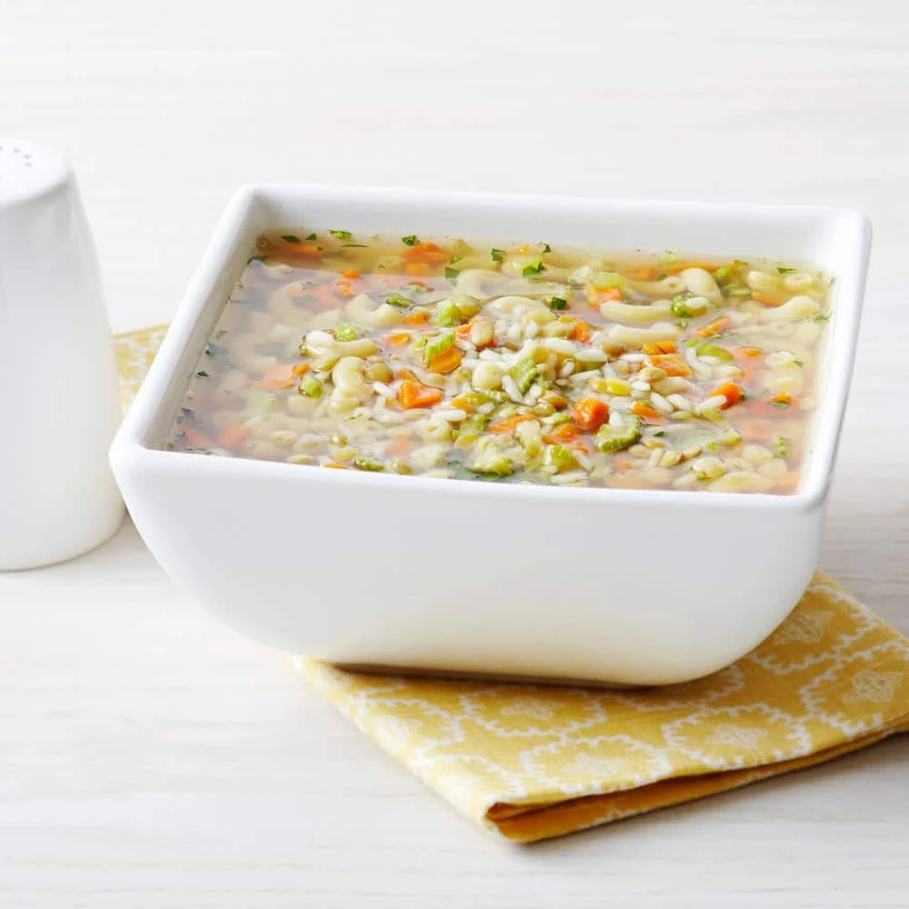 - Flavor-packed survival food includes: maple brown sugar oatmeal (1 pouch/10 servings) and morning moo’s lowfat milk substitute (1 pouch/20 servings), fettuccine alfredo (1 pouch/4 servings), creamy chicken-flavored rice (1 pouch/8 servings), hearty vegetable chicken-flavored soup (1 pouch/8 servings), banana chips (1 pouch/8 servings)