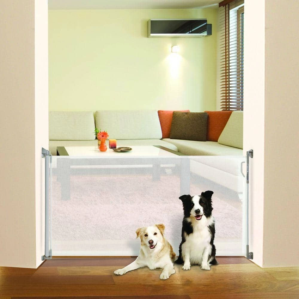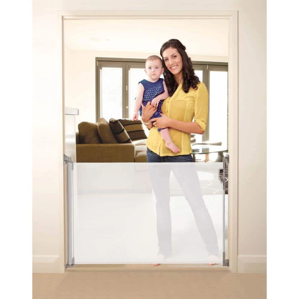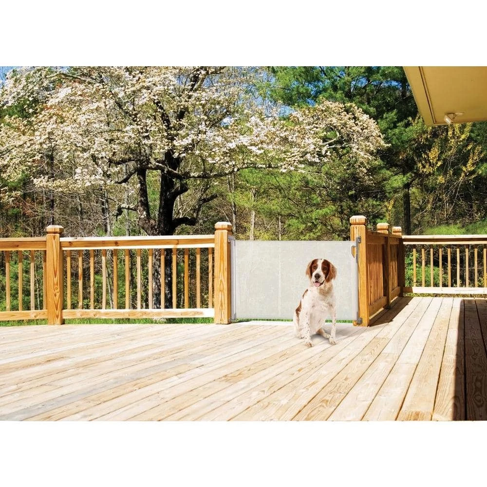 Dreambaby Retractable Gate will fit any opening up to 55 in. The gate comes with two sets of hardware for mounting in two different locations. Easy to use and install. All hardware is galvanizing steel to be used outdoors as well. Great for versatility and mobility. Comes with a full 1 year manufactures warranty.