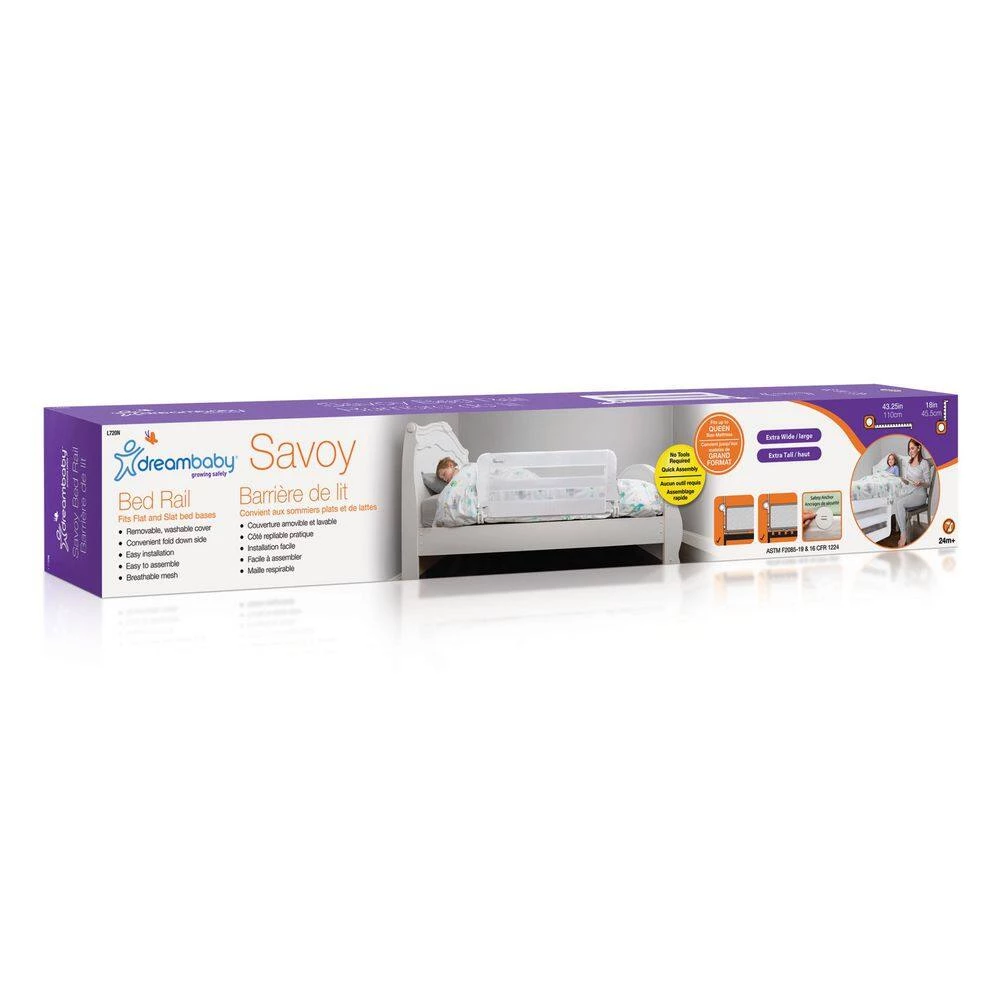 - EXTRA WIDE AND EXTRA TALL DESIGN: The Dreambaby® Savoy Bed Rail measures 43.25″ wide and 18″ tall. Suitable for children 18 months and older. NOTE: NOT SUITABLE FOR BEDS WITH RECESSED MATTRESSES