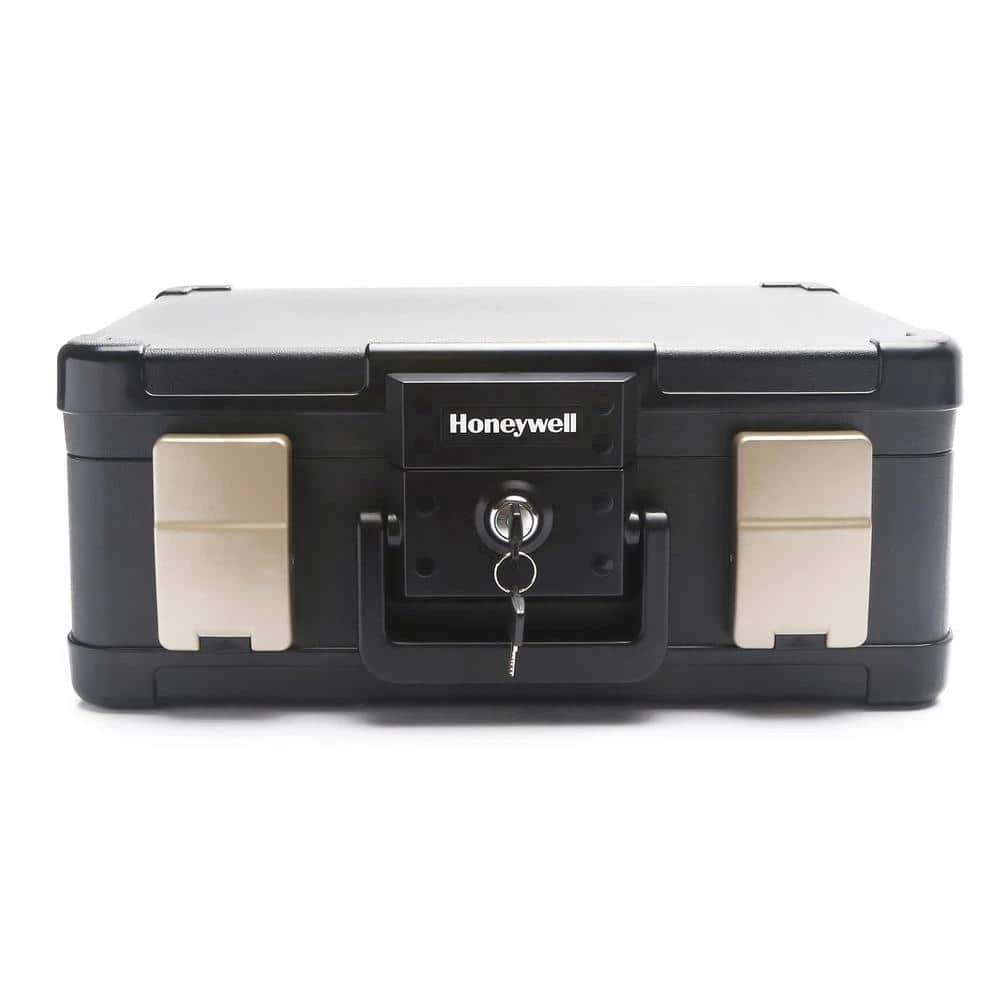 When disaster strikes, protecting your most important documents and irreplaceable data will ease and expedite your recovery process. This Honeywell 1102 0.15 cu. ft. Portable Molded Fire and Waterproof File Chest has a 30-Minute UL Fire protection rating up to 1550 degree F/843 degree C. A waterproof seal and special latch design protects contents against water damage caused by Mother Nature and/or accidents for 24-hours, even when completely submerged under 1 m. This fireproof chest is excellent for the small valuables and documents, along with many types of digital media. Honeywell safes are backed by an industry leading 7-year limited warranty. In the event of a fire the contents will be protected but the chest itself will likely be damaged. Our Lifetime After-Fire Free Replacement guarantee means that we will provide you with a new replacement chest if it is damaged in a fire.