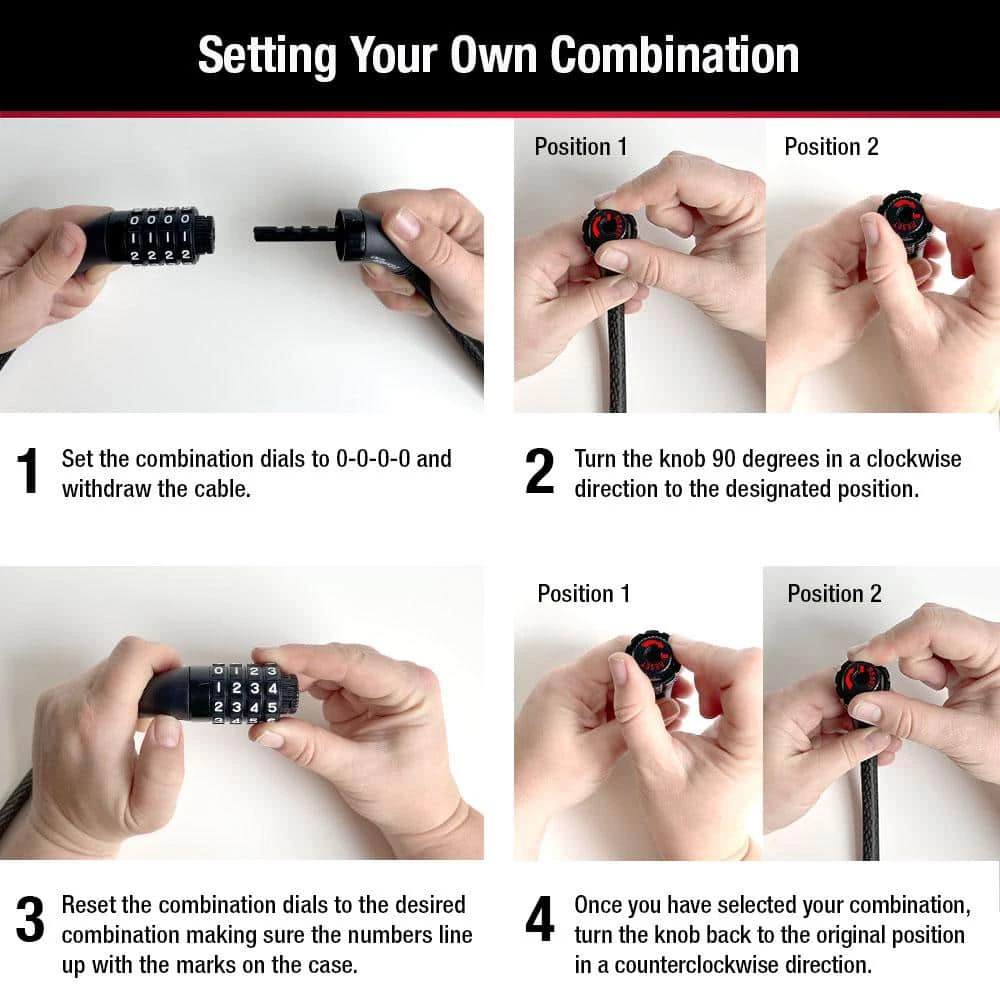 - Cable bike lock features a set your own combination, four-digit combination lock;