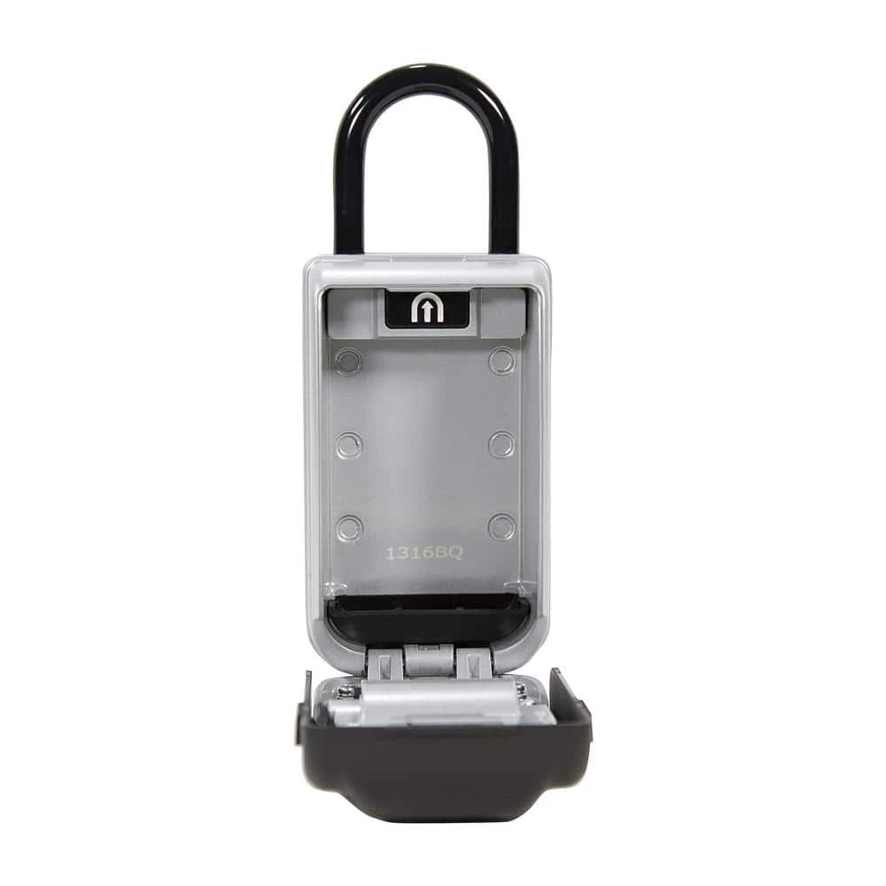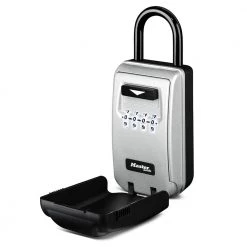 The Master Lock 5424D Lock Box, Resettable Combination Dials, Light Up Dials features a 2-7/8 in. (72 mm.) wide metal body for durability. Portable lock box with light up dials offers the freedom of controlling access to your property in dark and low-light conditions. Lock box dials are high-contrast, illuminating dials with resettable combination functionality which provide a secure, easy-to-manage storage location for spare keys and access cards. Easily attach your lock box to a doorknob and be confident in the strength and reliability of the product you just installed. Master Lock’s Lifetime Guarantee provides peace of mind from a brand you can trust.