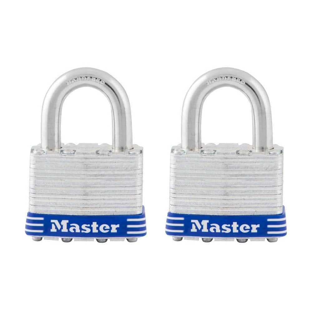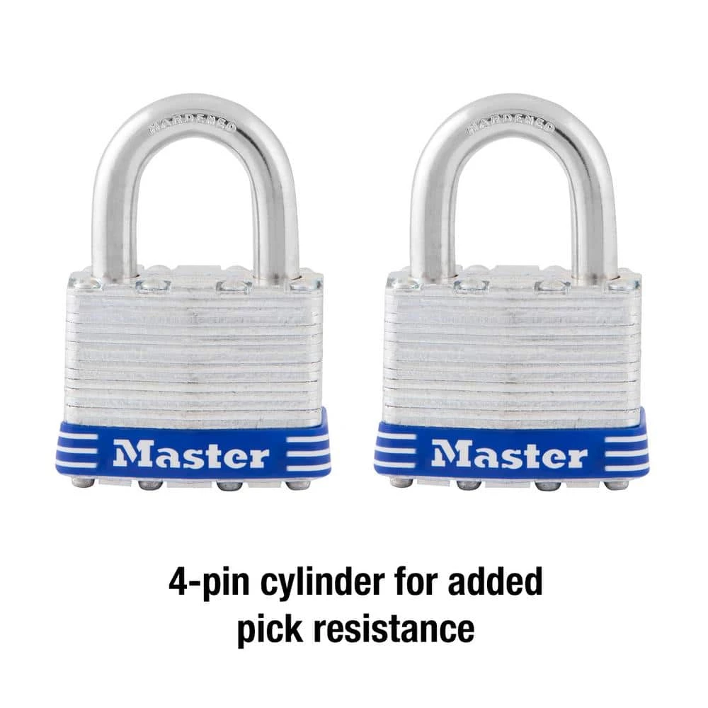 The Master Lock 1THC Outdoor Padlock with Key, Two Pack, features a 1-3/4 in. (44 mm.) wide laminated steel body for superior strength. Keyed locks have a 5/16 in. (8 mm.) hardened steel shackle which offers superior cut resistance. Locks includes a four-pin cylinder that prevents picking and dual locking ball bearings that provide resistance from prying and hammering. These padlocks are ideal for residential gates and fences, sheds, workshops and garages. Master Lock’s Lifetime Guarantee provides peace of mind from a brand you can trust.