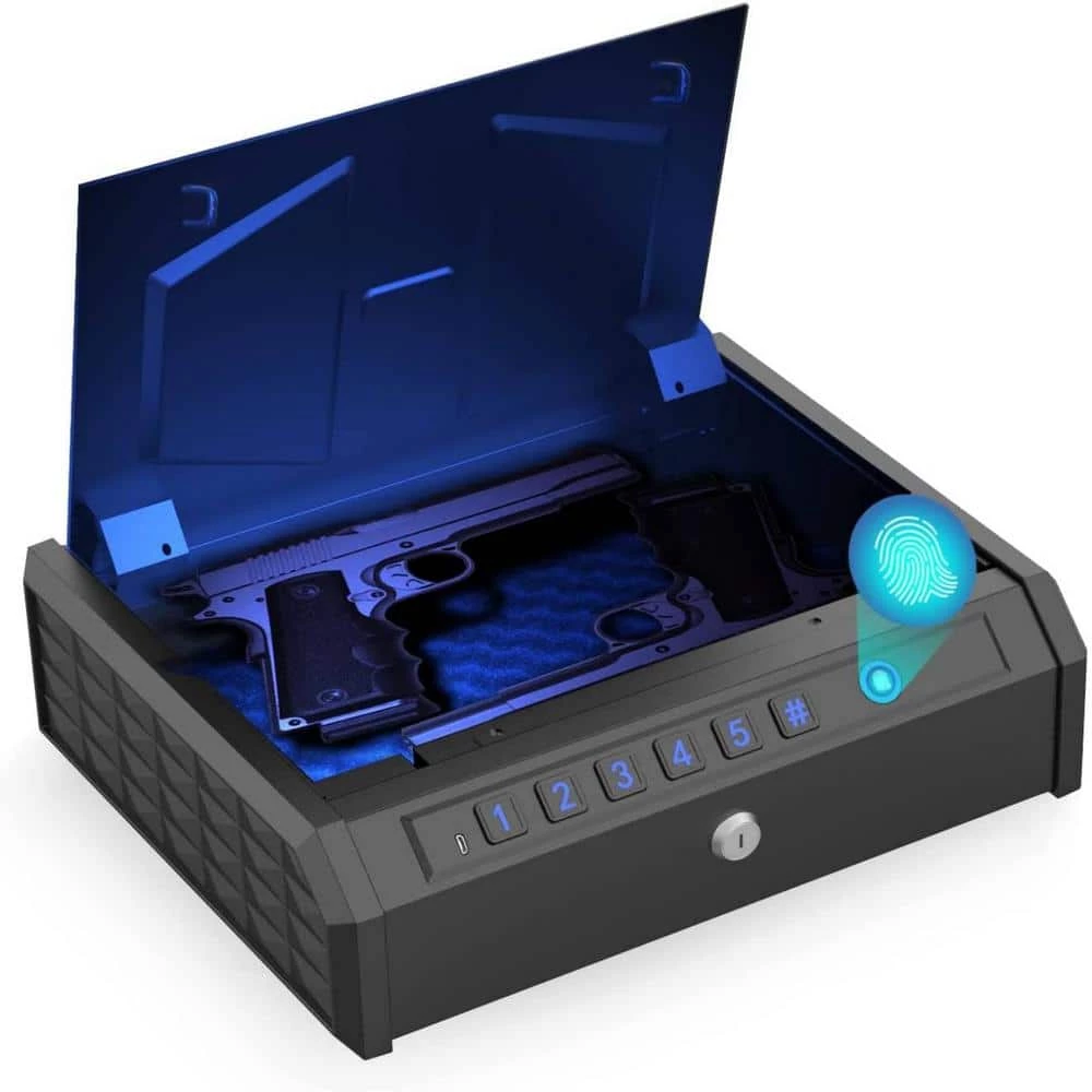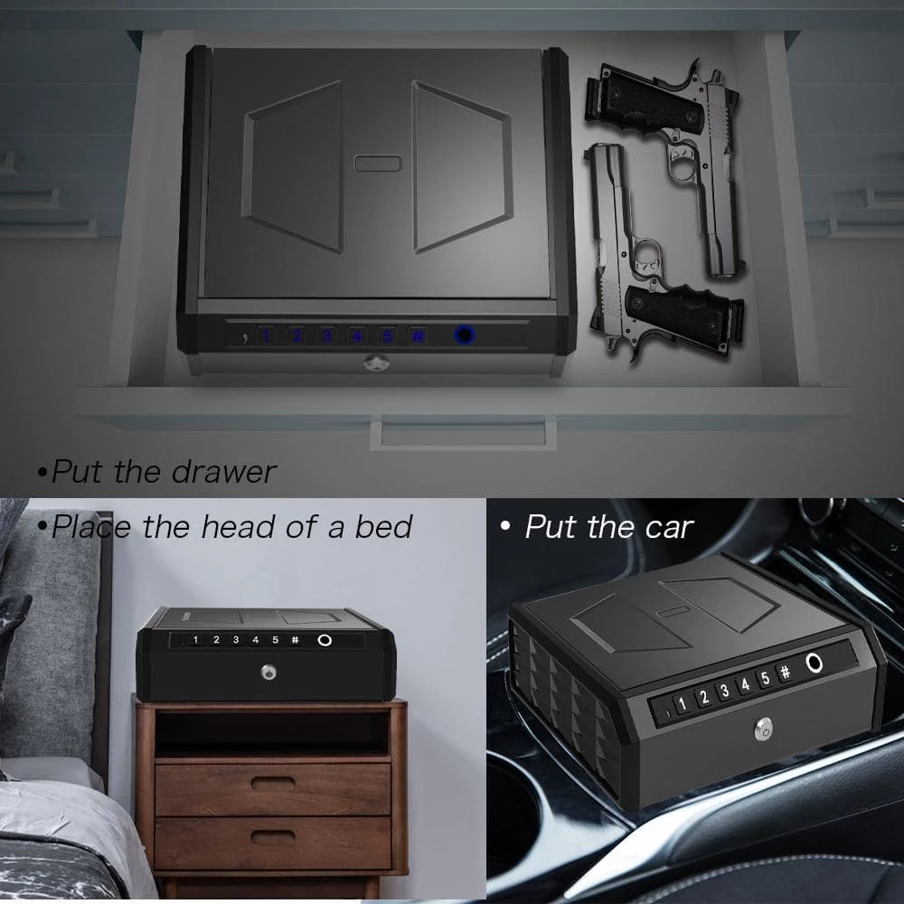This biometric gun safe can give you sure security with solid steel construction. With fingerprint quick access, it can protect your firearms from unauthorized entry. Larger storage available for 2 handguns. Let’s get with you.