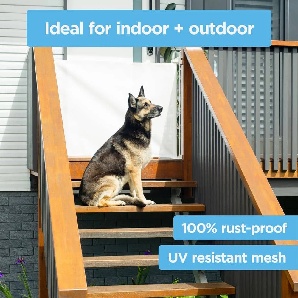 - Children and pets: built for functionality, the extra wide indoor/outdoor retractable gate works as both an infant gate and a pet gate to keep mischief contained by providing a safe, closed off environment to play; the durable mesh is designed to endure hazardous outdoor conditions and pets claws