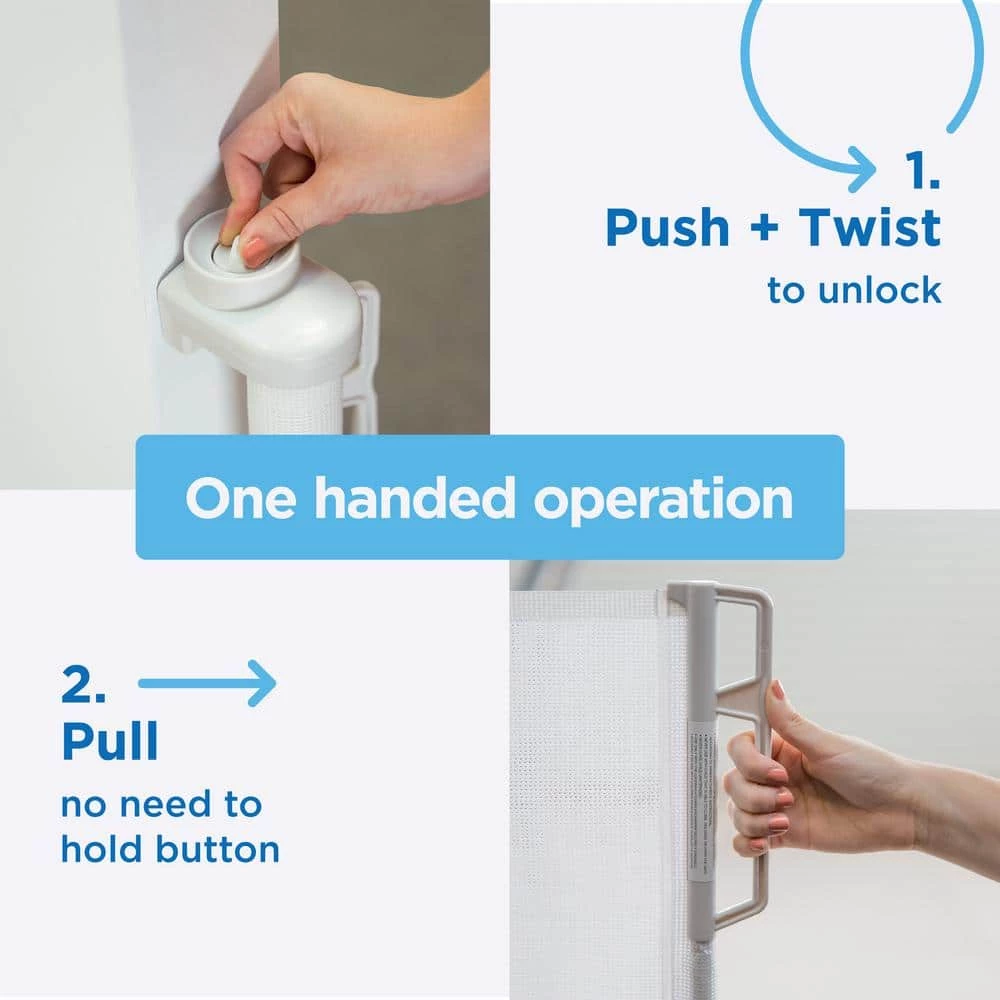 - 1 handed operation: the one handed operation allows you to open and close while holding your child, simple 2 step operation – push, twist and release button; pull the handle to extend the gate, when the handle is released the gate automatically locks the release mechanism