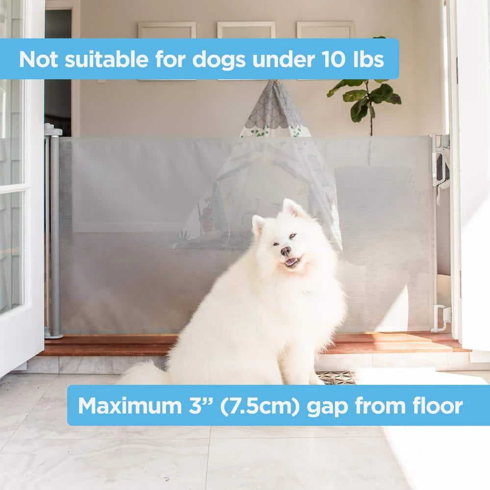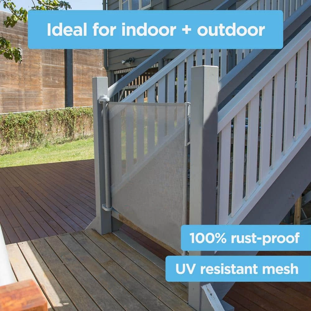 - Children and pets: built for functionality, the outdoor retractable gate works as both an infant gate and a pet gate to keep mischief contained by providing a safe, closed off environment to play; the durable mesh is designed to endure hazardous outdoor conditions and pets claws