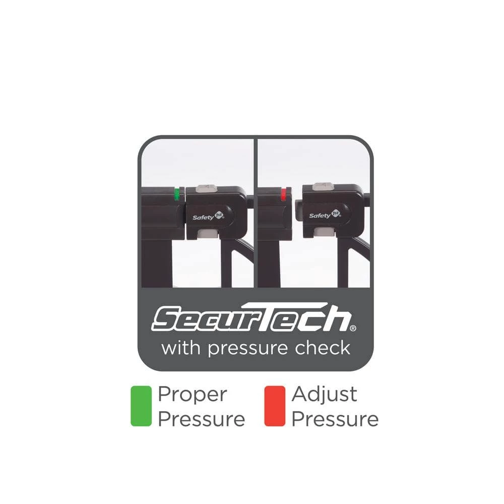- Quick and easy install: visual red/green indicator lets parent know gate is installed securely