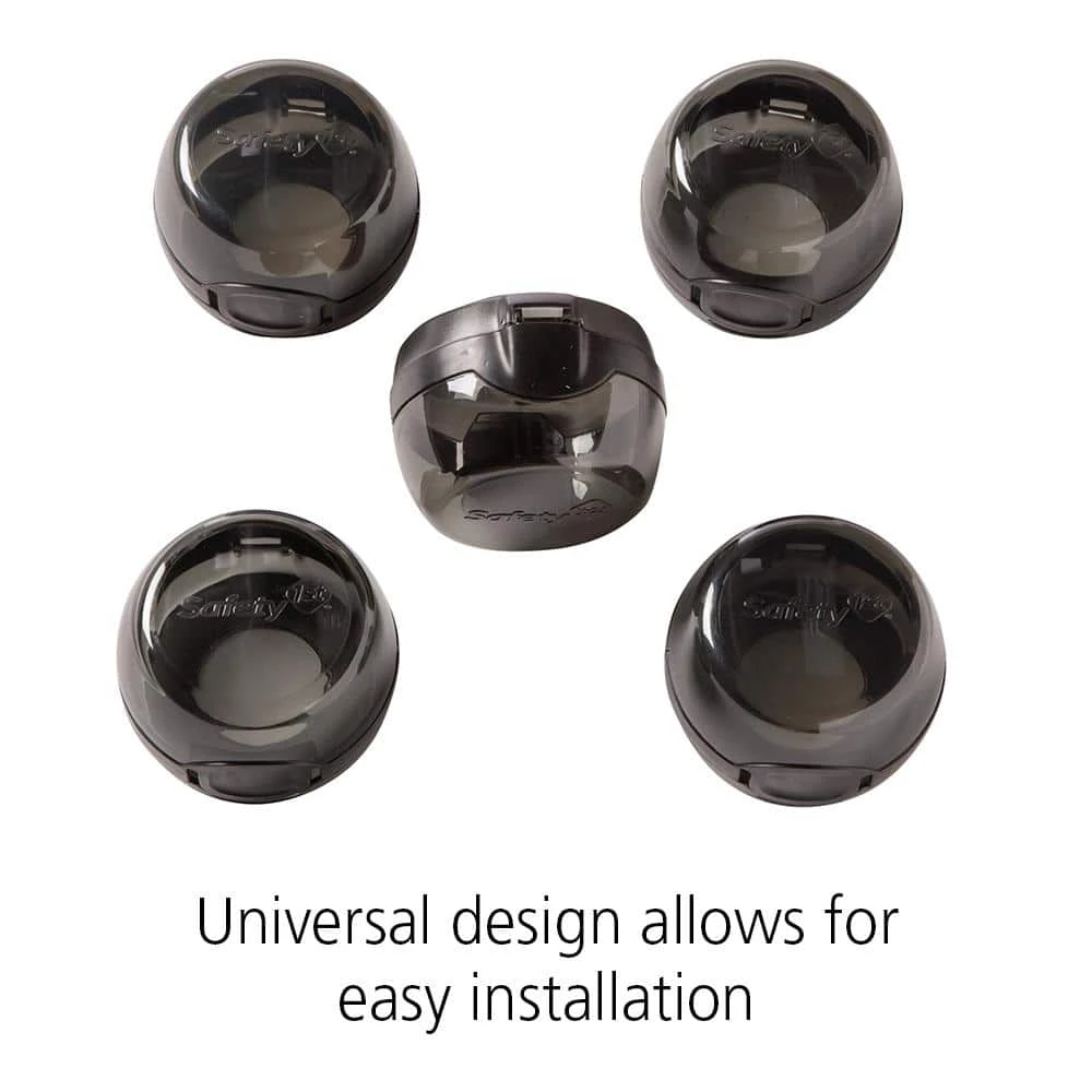 Help keep Stove knobs off-limits to children with Safety 1st Stove Knob Covers. The 5-piece set is composed of heat-resistant plastic with easy, non-adhesive mounting. Universal design fits most stoves.