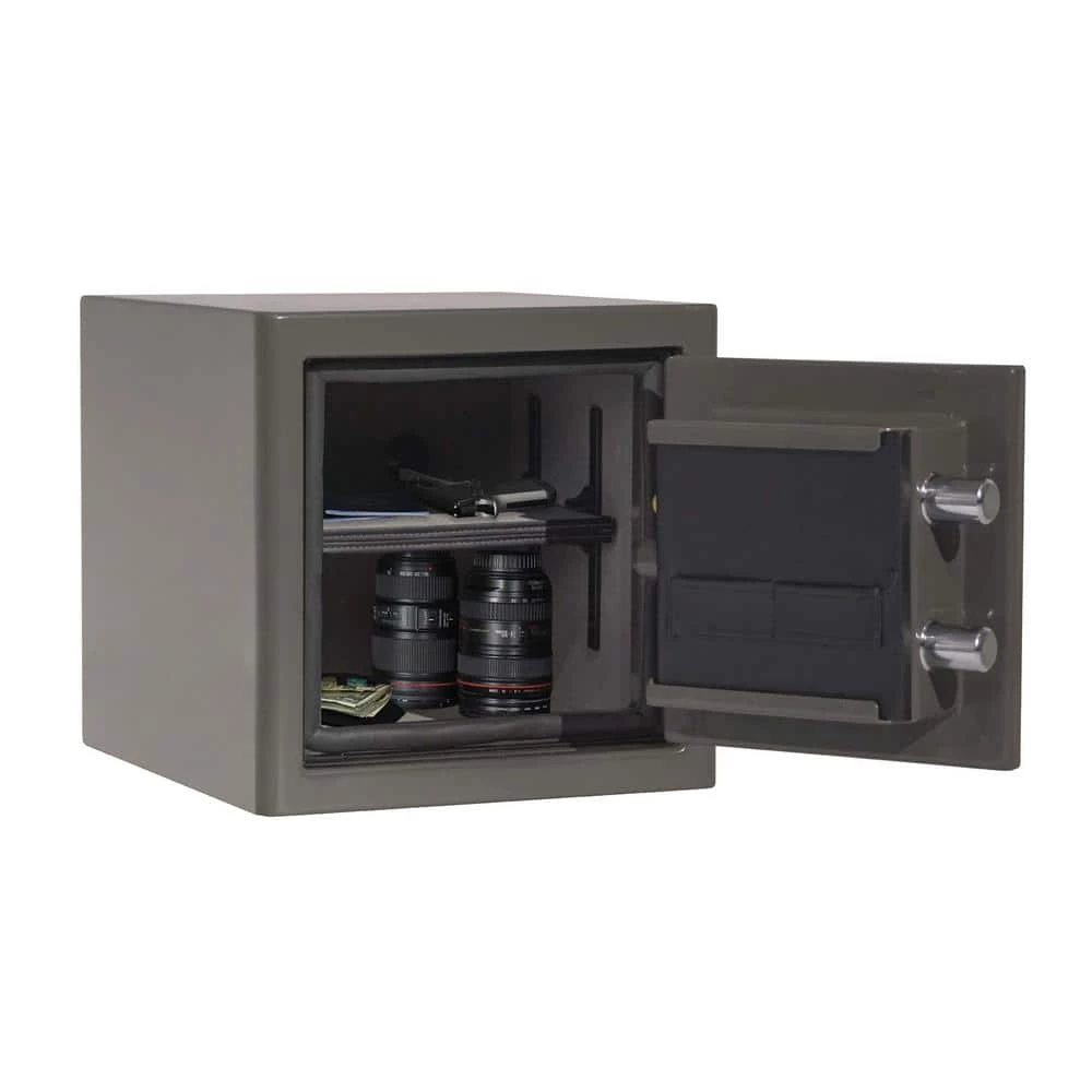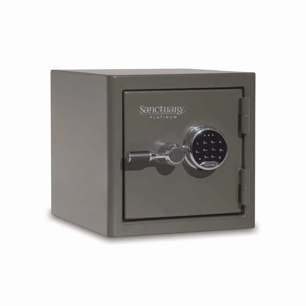 The Sanctuary Platinum – Small fire and waterproof home and office safe is secure, easy to use, and built to fit your important documents and valuables. You can rely on our Sanctuary Platinum home and office safe to protect your valuables from fire, water and smoke with our proprietary triple seal, fire protection of 60 minutes up to 1750°F, and water protection for up to 7 days up to 6 inches of standing water, all of which are 3rd party tested to ensure accuracy. The Sanctuary Platinum safe is equipped with a fully programmable digital lock with illuminated numeric touch pad and a theft alarm that triggers an alarm during unauthorized entry. The security features include a rugged steel construction, two 1.25″ active steel bolts and one 1.25″ dead bolts, 2 back-up keys, a waterproof bolt-down kit and two pre-drilled holes, allowing you to anchor the safe at your desired location. The key features include a carpeted interior for surface protection, a black leather door organizer, and one fully wrapped and adjustable carpeted shelf that offers a functional space division for storing valuables. This safe is approved by the California Department of Justice and includes our BEST lifetime warranty that covers the safe against theft, fire, natural flood, locks, parts, and paint.