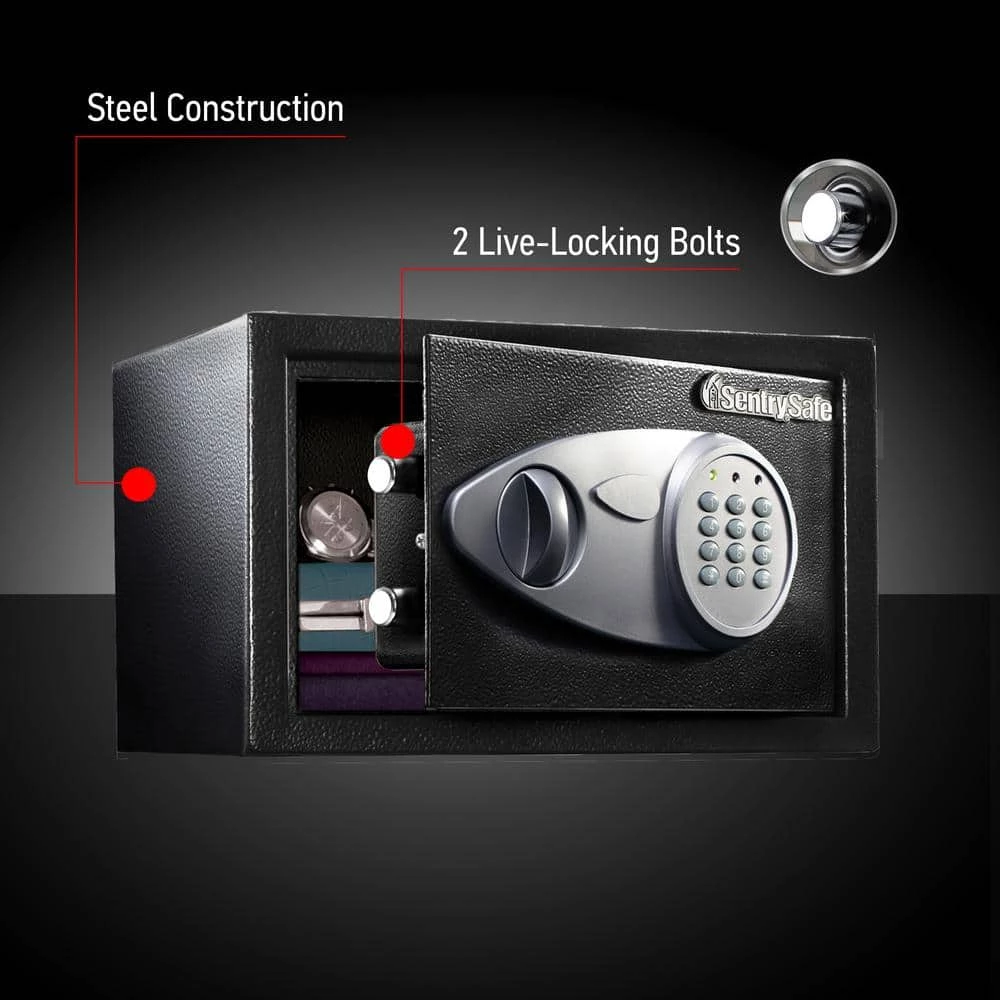 Featuring solid-steel construction and a hardened steel plate design, the Sentry Safe 0.5 cu. ft. Electronic with Key Lock Safe keeps your valuables protected against theft. The electronic lock with key override helps prevent unwanted access. The hardware lets you bolt the safe to the floor for an added level of security.