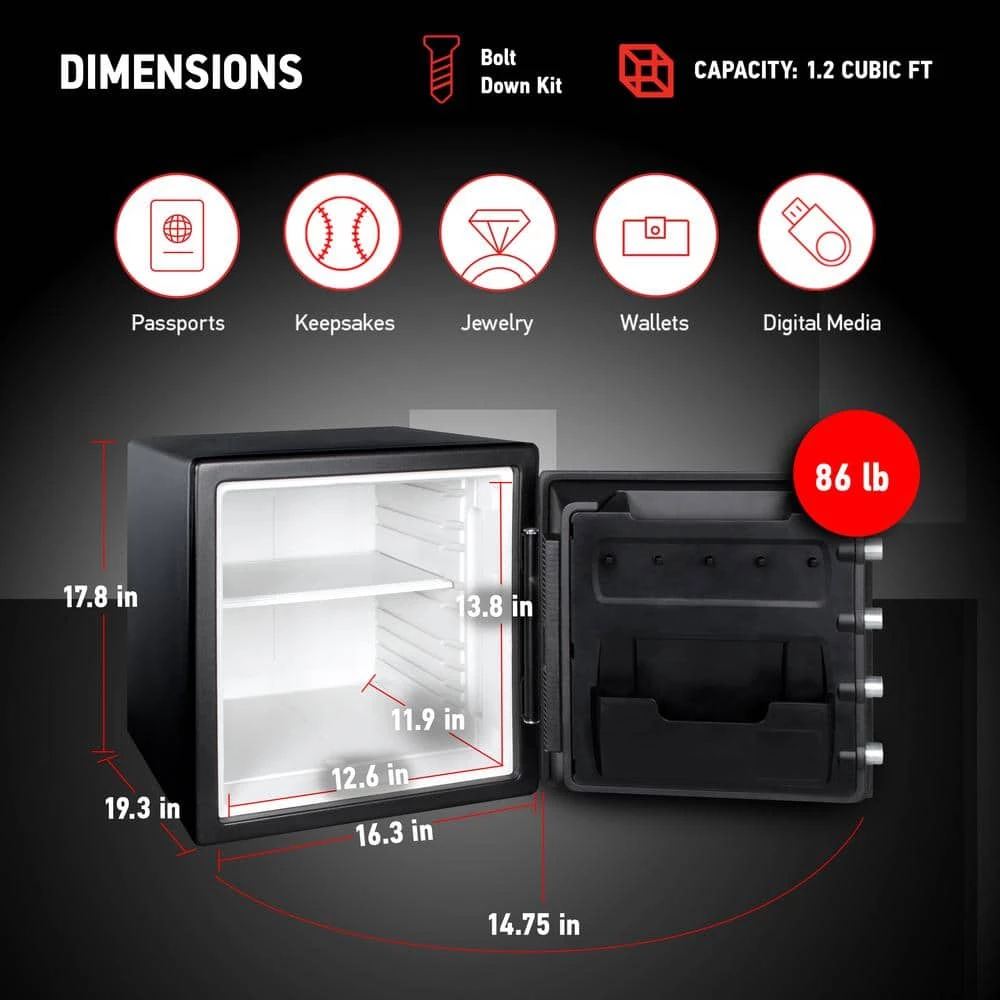The SentrySafe SFW123DTB Fireproof Safe and Waterproof Safe offers peace of mind for the safe storage of your important documents, digital media and other valuables. Built to safeguard your valuables with UL Classified fire protection and ETL Verified water protection. This safe is ideal for all your home and office security needs.