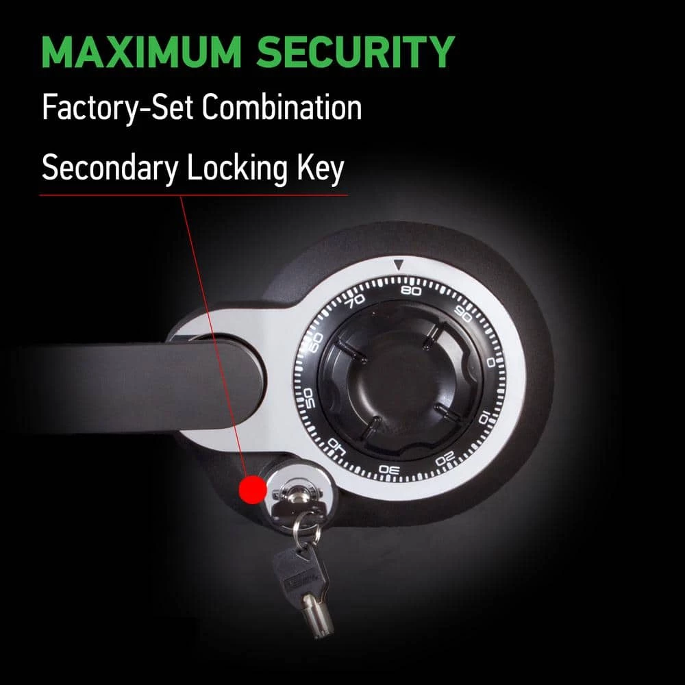 - Preset dial combination fire safe with secondary locking key for strong security; combination safe features four live-locking bolts, steel construction, pry-resistant hinge bar, tray, and bolt down hardware