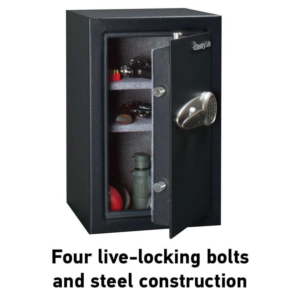 Feel confident in the security of your business assets with the SentrySafe T6-331 Security Safe. This safe is built to withstand break-ins and theft. A thick solid steel anti-drill door and four live-locking bolts provided added security.
