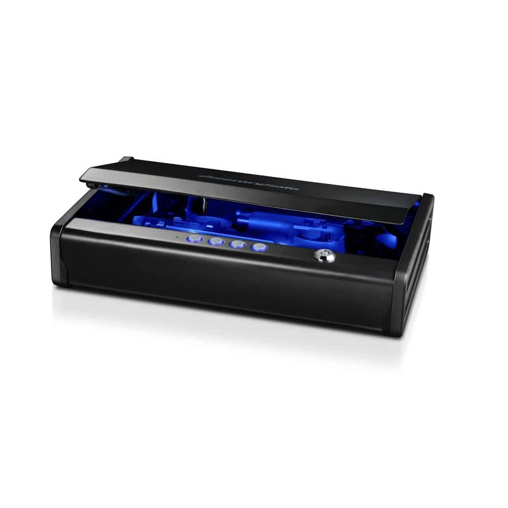 Have quick, reliable access to firearms when it matters most. The QAP2EL offers larger two pistol capacities, interior lighting for easy access in dark spaces and equipped with compression gas strut that allows for quick, single handed, whisper-quiet entry. The Sentry Safe XL Quick Access Pistol Safe empowers customers to defend their homes and families in any unfortunate circumstance.
