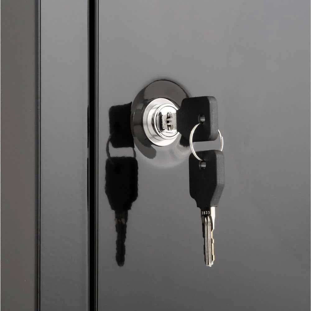This Two-Gun Key Lock Handgun Ammo Security Cabinet is perfect for securing your valuables, supplies, ammo and handguns. This safe features a matte black finish, pre-drilled mounting holes for installation and a large locking cam that passes through the steel door. It’s approved by the California DOJ and meets the requirements of the California penal code section 12088.