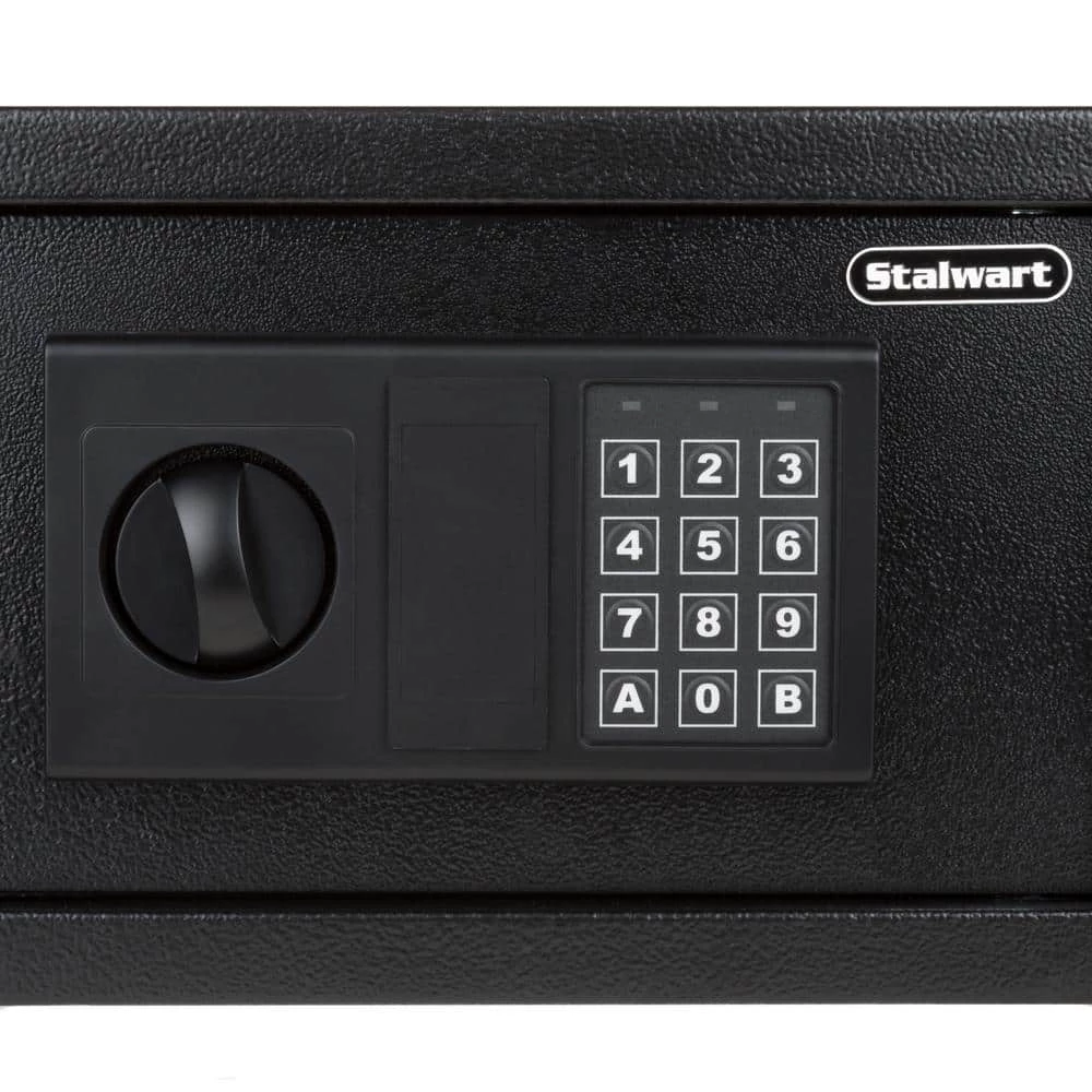 Protect your treasured belongings and documents with the Electronic Digital Safe Box by Stalwart! This password protected small safe is ideal for home, business, and travel, and is a great way to securely store cash, jewelry, documents, passports, and more! The money safe can be mounted to the floor or wall for added security, and also comes with two manual override keys so that you can always retrieve your belongings when needed. Rest easy knowing that your valuable assets are protected.