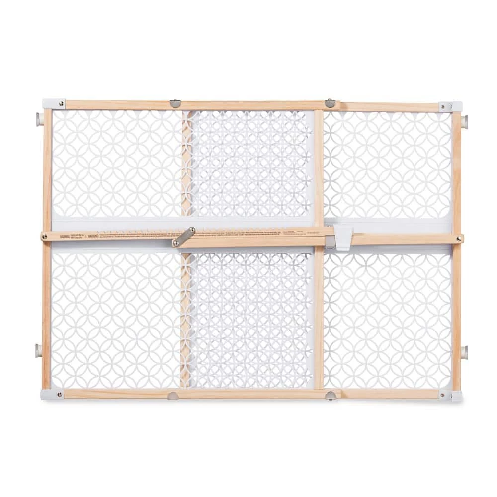Childproof your home in style with the Summer Secure Pressure Mount Wood & Plastic Baby Gate. Made of wood and plastic with a natural hardwood finish and geometric decor insert, this baby gate will complement any home decor. Have added peace of mind knowing that this sleek gate can be installed between rooms. Easily adjust this gate in 1″ increments for a custom fit. This 24″ tall baby gate can fit openings from 27.5″ to 42″ wide making it the ideal gate for toddlers and small pets.