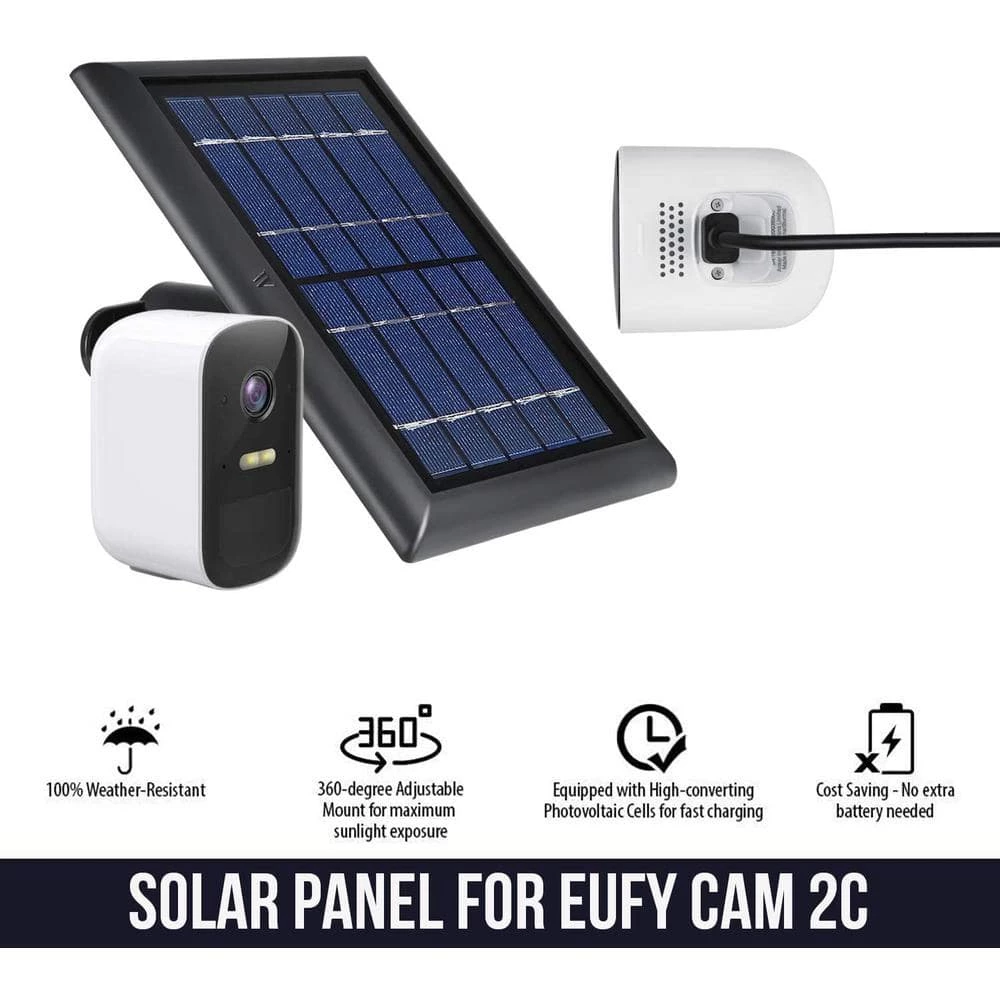 - Charge your Eufy cam 2C or 2C pro – our solar panel ensures that your Eufy cam 2C or 2C pro never runs out of battery