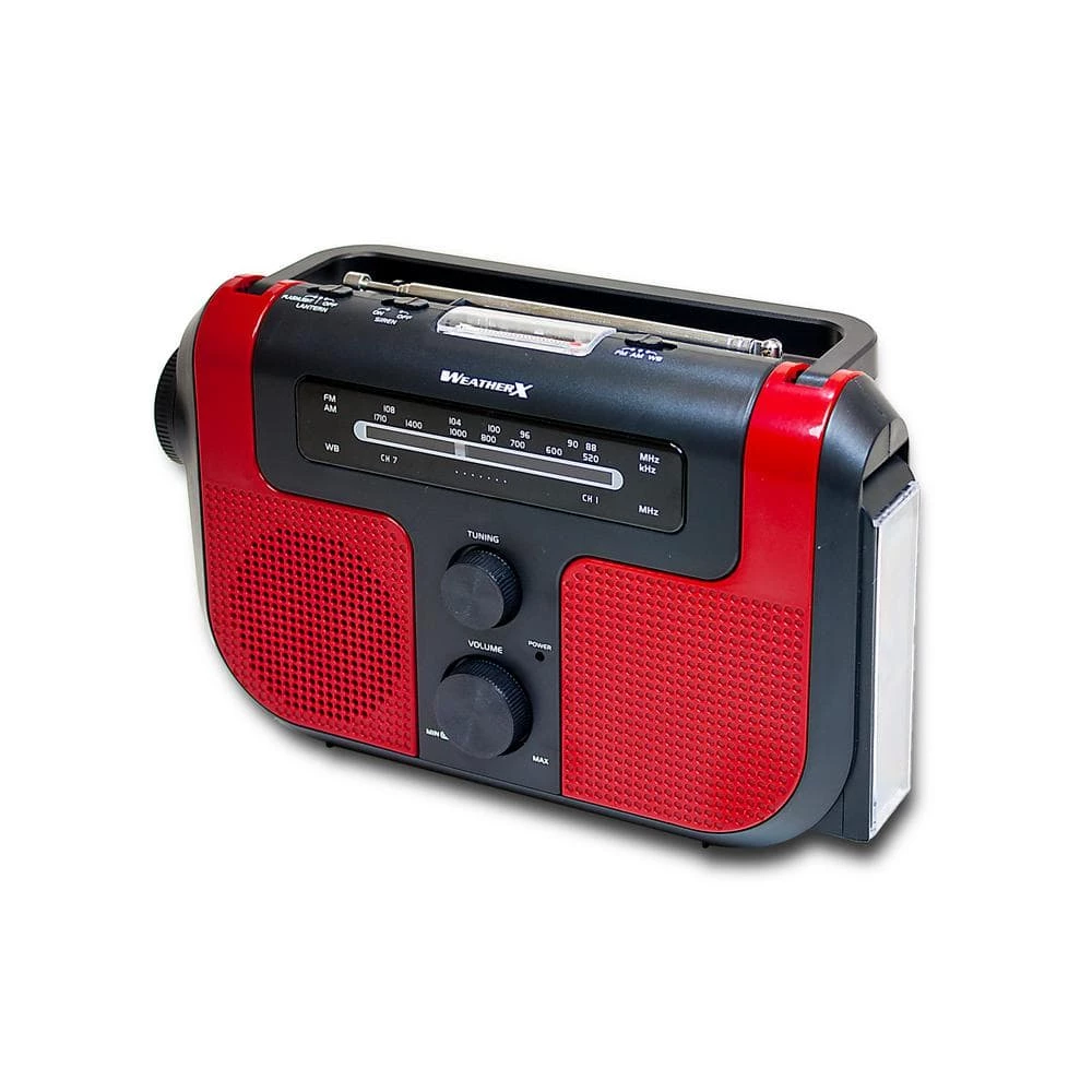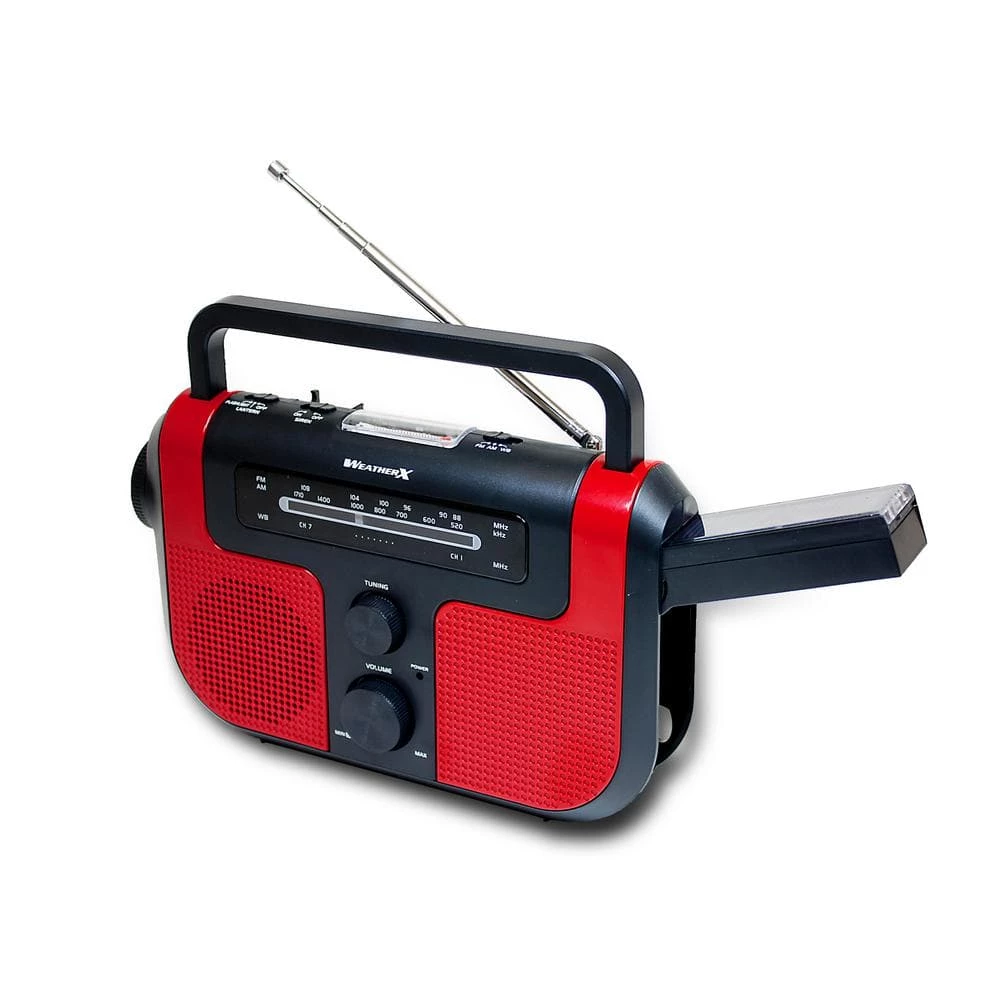 A powerful LED flashlight provides lighting for any occasion. An AM/FM/weather band radio keeps you informed of the latest weather alerts and local AM and FM programs. A dynamo hand crank, solar charging panel and DC battery power ensure you’re ready for any situation.