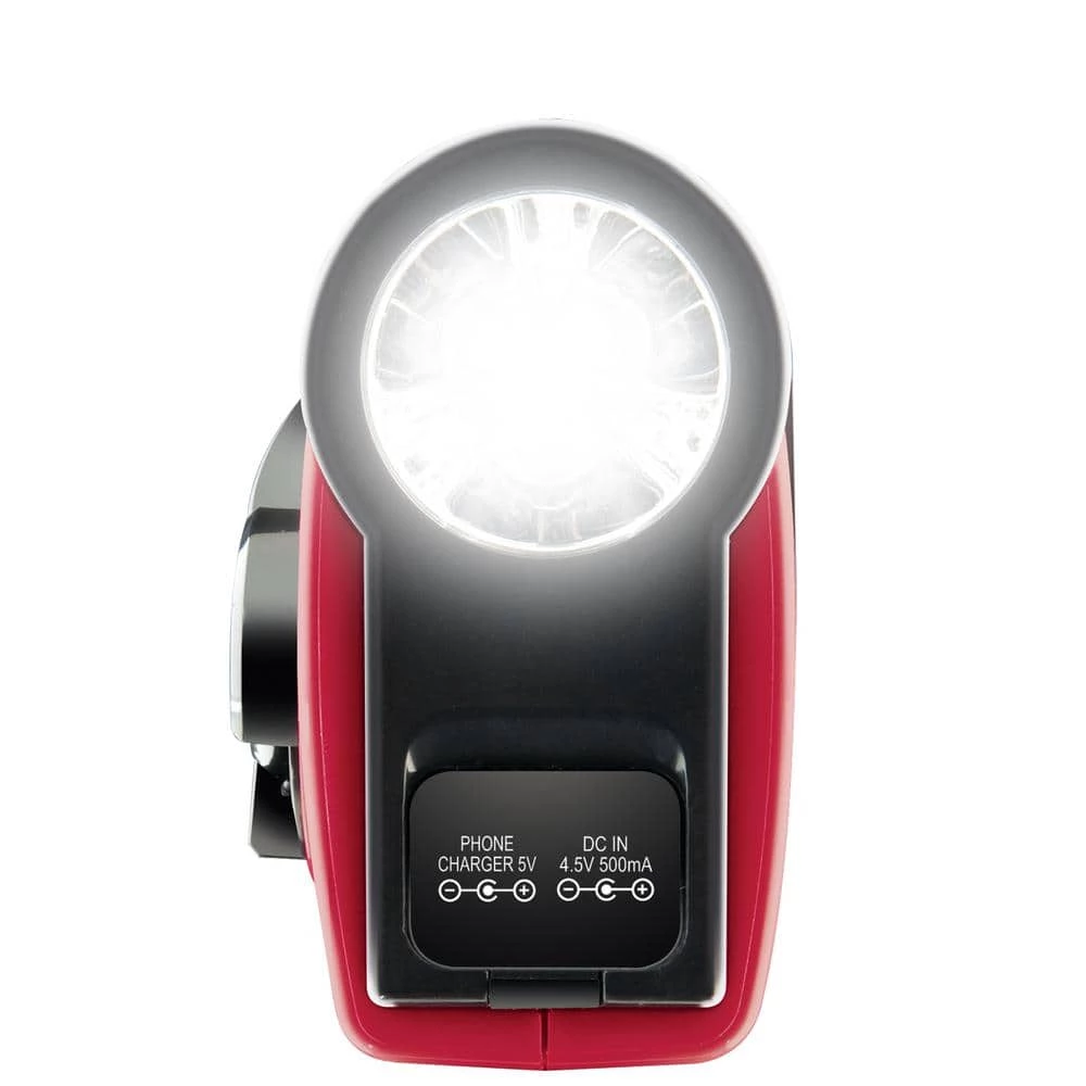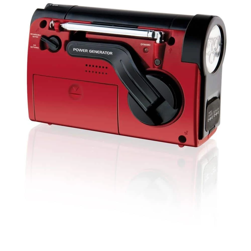 A convenient LED flashlight provides lighting for any occasion. An AM/FM/weather band radio keeps you informed of the latest NOAA alerts and local AM and FM programs. A dynamo hand crank, cell phone charger, and DC battery power ensure you’re ready for any situation.
